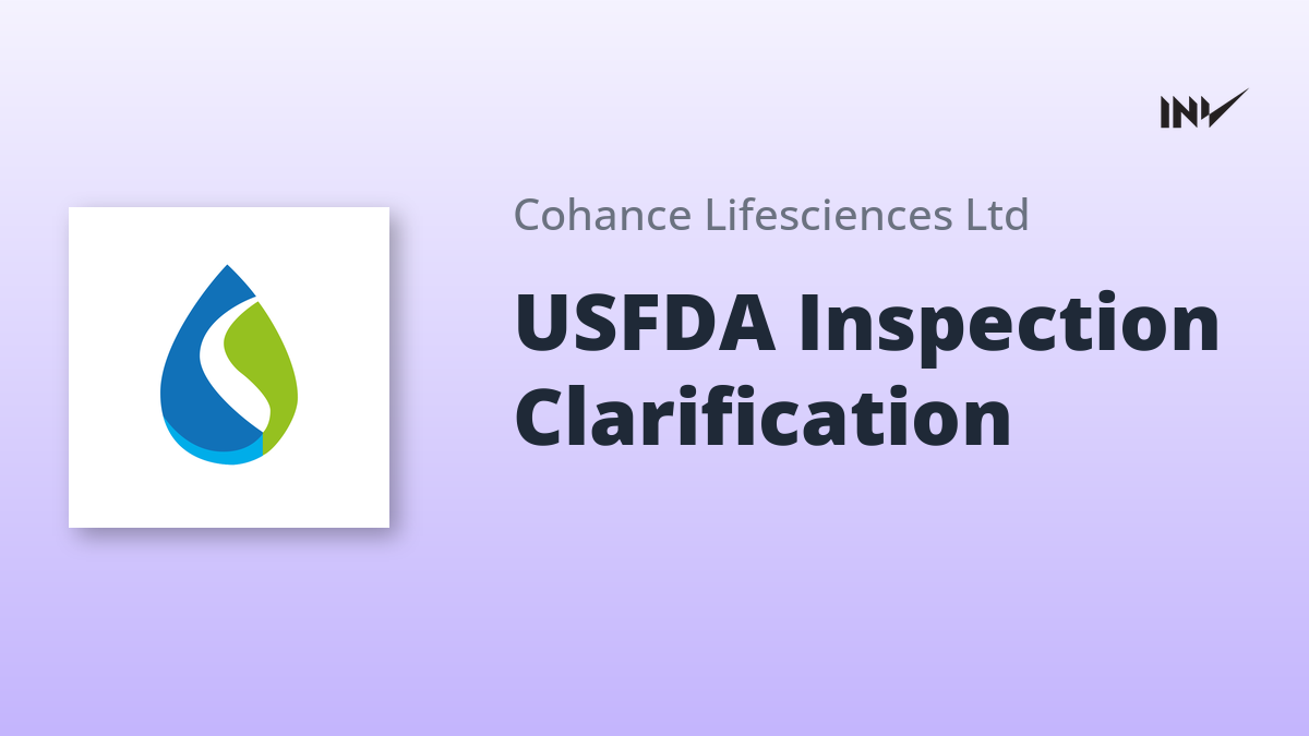 Cohance Lifesciences clarified news regarding the USFDA inspection at its Finished Dosage Formulations Manufacturing Facility. The company received Form 483 with six observations and has submitted a comprehensive Corrective and Preventive Action (CAPA) plan. In FY2025, US revenues from this facility contributed less than 2% of consolidated revenues, with related EBITDA contribution below 1%, indicating no material impact. Cohance remains committed to maintaining high quality standards.