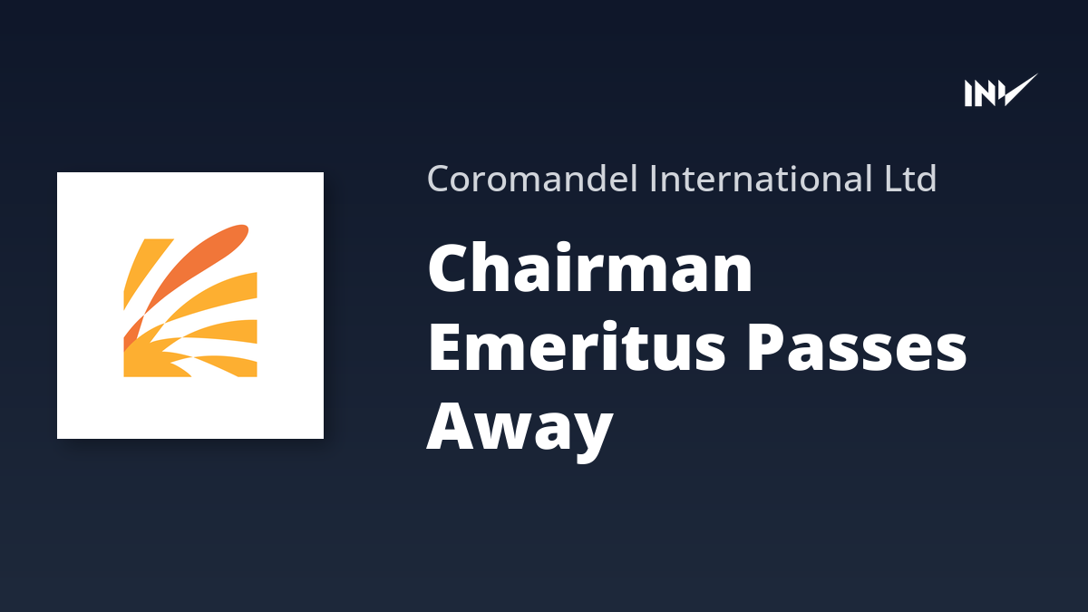 Coromandel International has announced the demise of Shri A. Vellayan, the esteemed Chairman Emeritus of the Company and former Chairman of the Murugappa Group, on November 17, 2025.