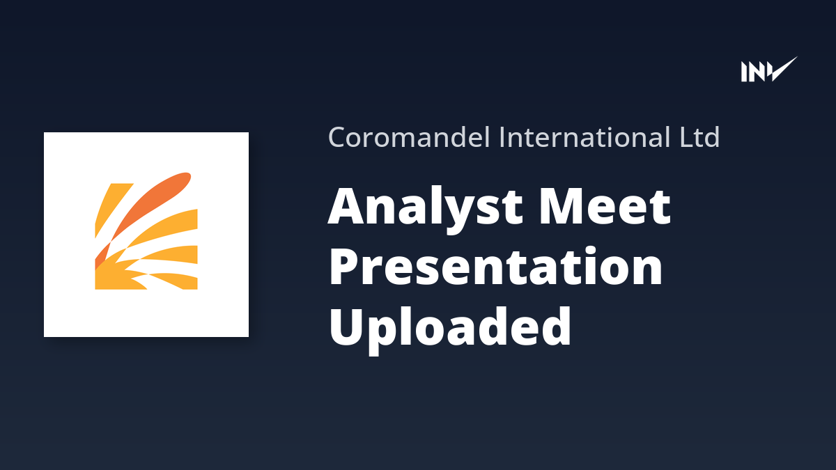 Coromandel International has announced that the investor presentation for the Investor and Analyst Meet to be held on December 1, 2025, has been uploaded to the company’s website.