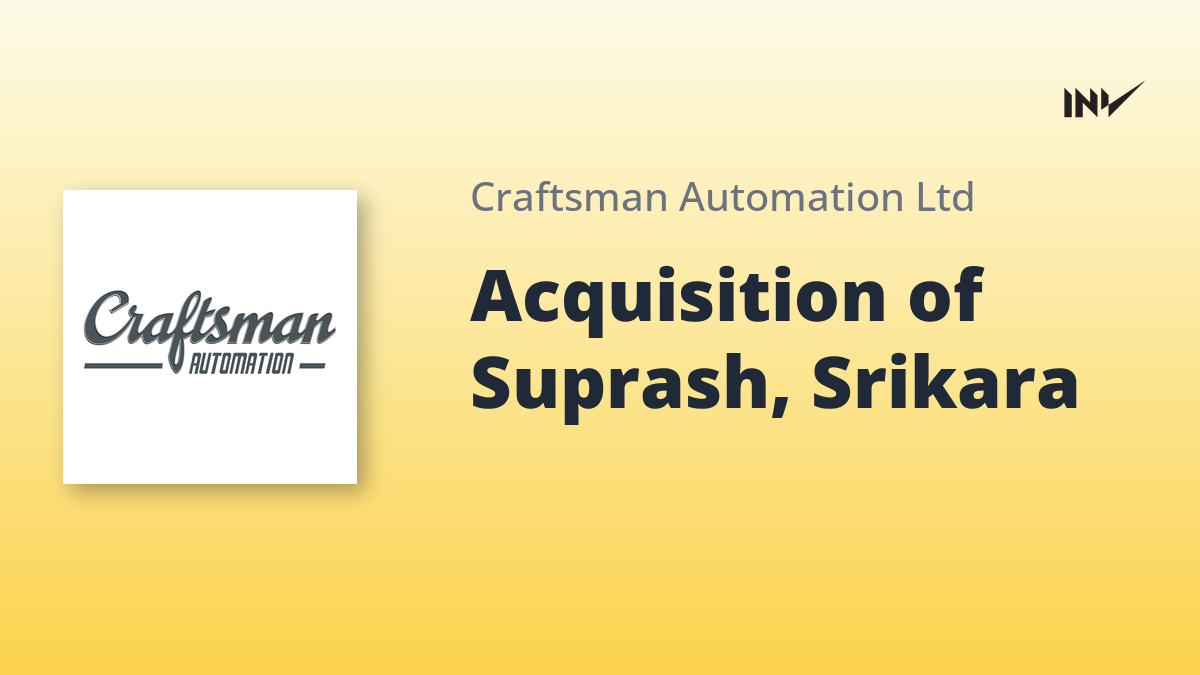 DR Axion India Private Limited, a wholly-owned subsidiary of Craftsman Automation, has entered into a Share Purchase Agreement (SPA) on December 19, 2025, to acquire 100% of the equity shares of Suprash Developers Private Limited. This acquisition will also indirectly result in DR Axion acquiring Srikara Technologies Private Limited, a wholly-owned subsidiary of Suprash.
