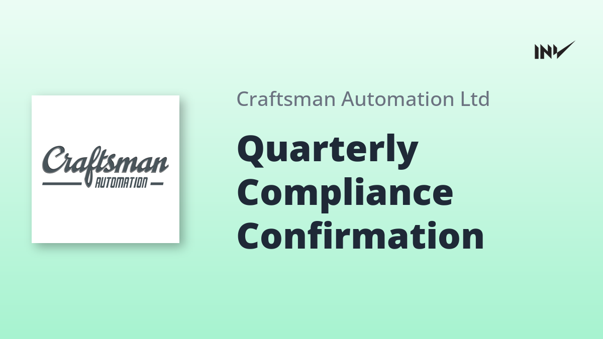 Craftsman Automation Compliance Confirmation for Quarter Ended March 2026