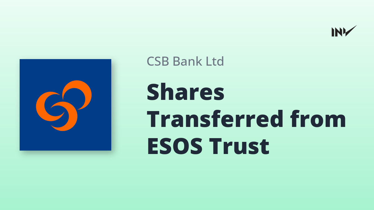 CSB Bank Limited announced the transfer of 34,000 equity shares held by its ‘CSB ESOS Trust.’ The transfer occurred on Monday, March 9, 2026. These shares were transferred in aggregate to three eligible grantees who exercised their vested stock options under the CSB Employee Stock Option Scheme 2019. The bank has confirmed that this information is available on its official website.