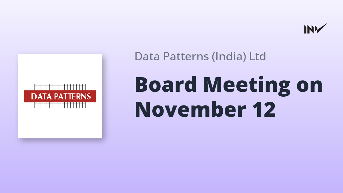 Data Patterns (India) Limited will hold a meeting of its Board of Directors on Wednesday, November 12, 2025. The primary agenda is to review and approve the company’s unaudited financial results for Q2 (July-Sept) and half-year which ended on September 30, 2025.