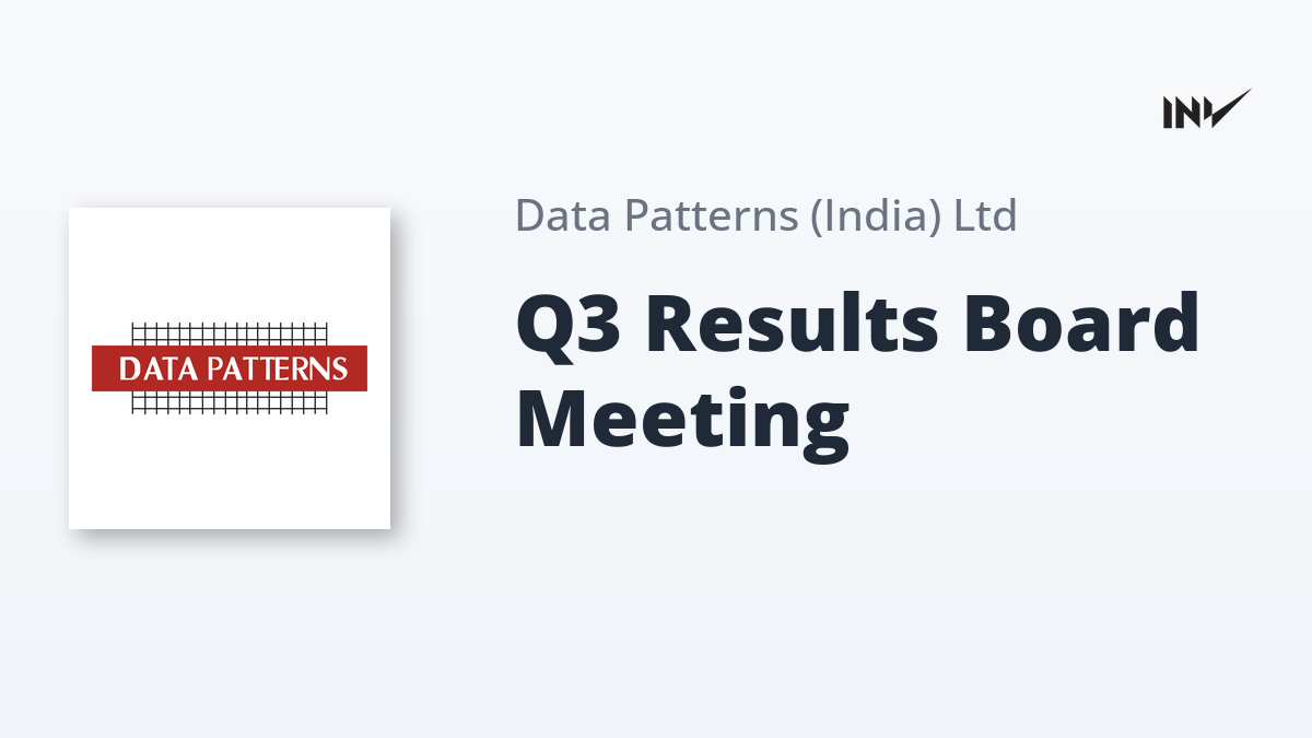 Data Patterns (India) Limited will hold a board meeting on Thursday, February 05, 2026, to review and approve the unaudited financial results for the quarter ended December 31, 2025.
