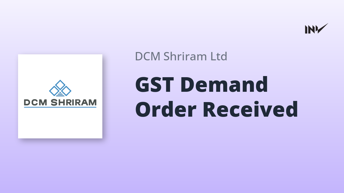 DCM Shriram has received a GST demand order disallowing Input Tax Credit (ITC) on certain goods and services. The demand order, dated December 23, 2025, involves a tax demand of Rs. 19.84 lakhs, along with applicable interest, and an equivalent penalty of Rs. 19.84 lakhs. The demand pertains to ITC availed on goods and services procured in the factory canteen.