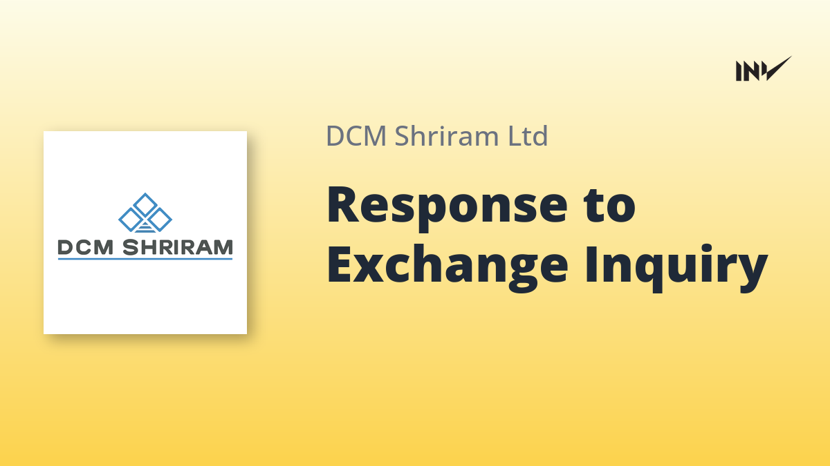 DCM Shriram has addressed an inquiry regarding a recent increase in trading volume. The company confirmed that all necessary information and announcements have already been disclosed to the exchanges, adhering to regulatory guidelines. DCM Shriram stated they have no further information to add on the matter and assured the exchange of their continued compliance.