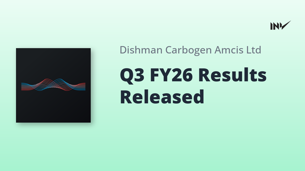 Dishman Carbogen Amcis Limited announced its Q3 FY26 financial results. Consolidated total income stood at ₹726.46 Crores. The company has maintained 100% security cover on its Non-Convertible Debentures, as reviewed by auditors. Financial results and auditor’s review reports are now available on the company’s website.
