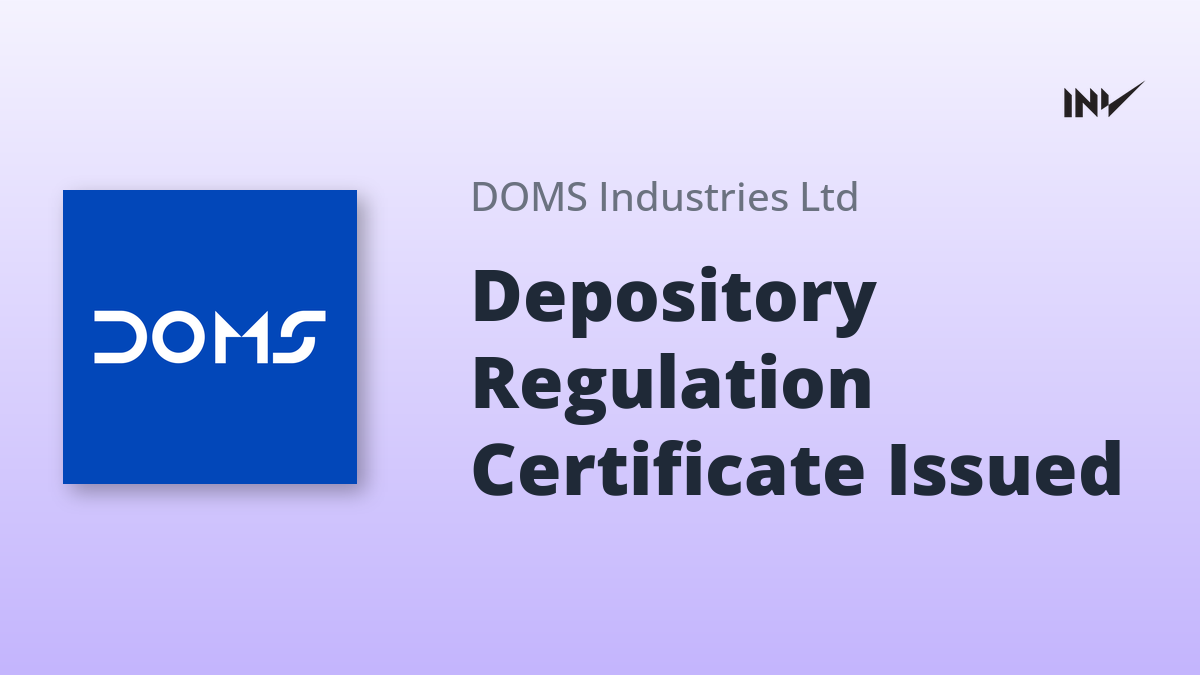 DOMS Industries has received a certificate pertaining to Regulation 74(5) concerning depository regulations for the quarter ending September 30, 2025. The certificate, dated October 6, 2025, confirms that there were no requests for dematerialization or rematerialization of securities during this period. This has been received from the Registrar and Share Transfer Agent (RTA).