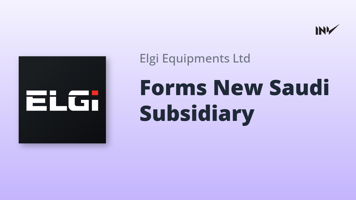 ELGI Equipments Limited Subsidiary Incorporation in Saudi Arabia
