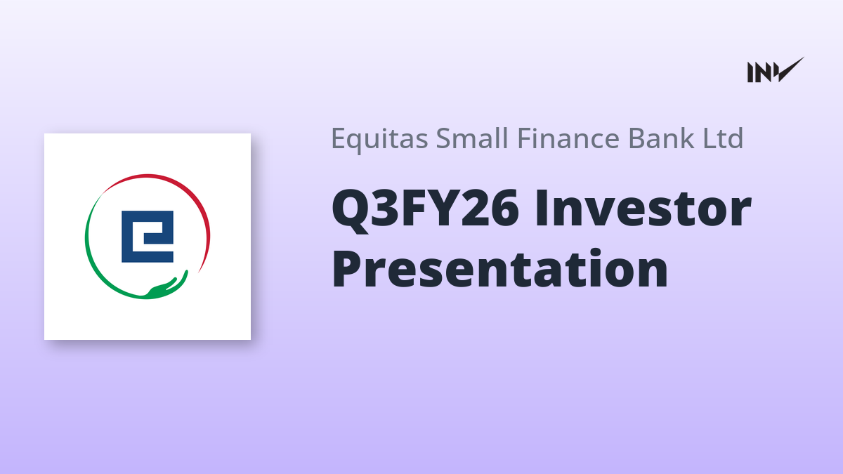 Equitas has released an investor presentation concerning the unaudited financial results for the third quarter of the financial year 2026 (October-December). The presentation highlights key performance indicators, strategic actions, and future outlook. Gross advances reached ₹43,268 Cr, with a CASA ratio of 30%. The bank reported a PAT of ₹90 Cr for the quarter.