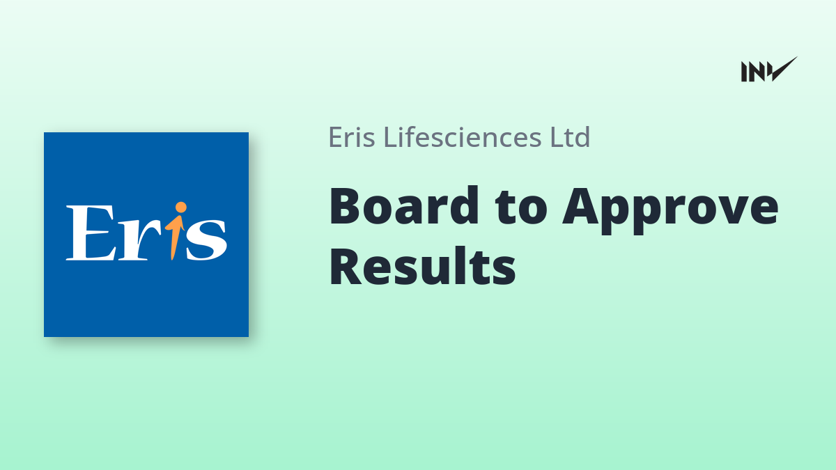 Eris Lifesciences Board Meeting Scheduled to Approve Quarterly Results
