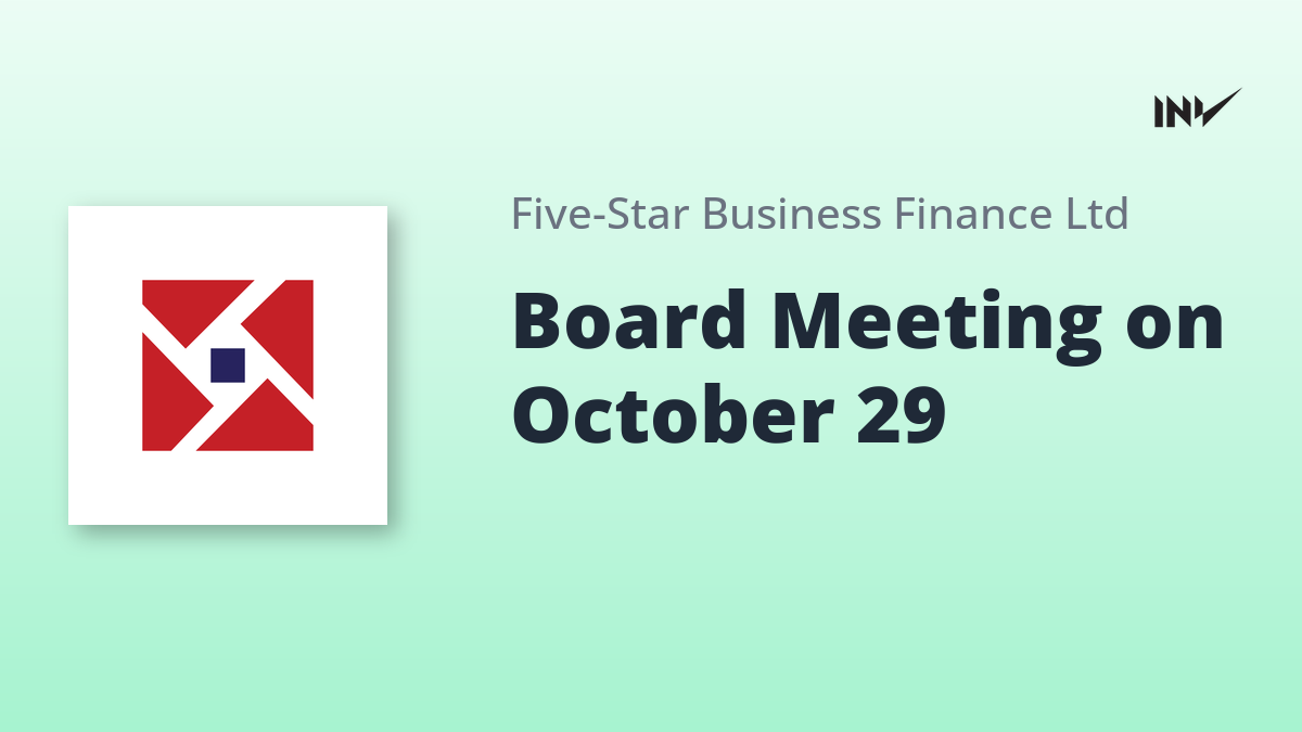 A meeting of the Board of Directors of Five-Star Business Finance Limited will be held on Wednesday, October 29, 2025. The meeting is to consider and approve the unaudited financial results for the quarter and half-year ended September 30, 2025.