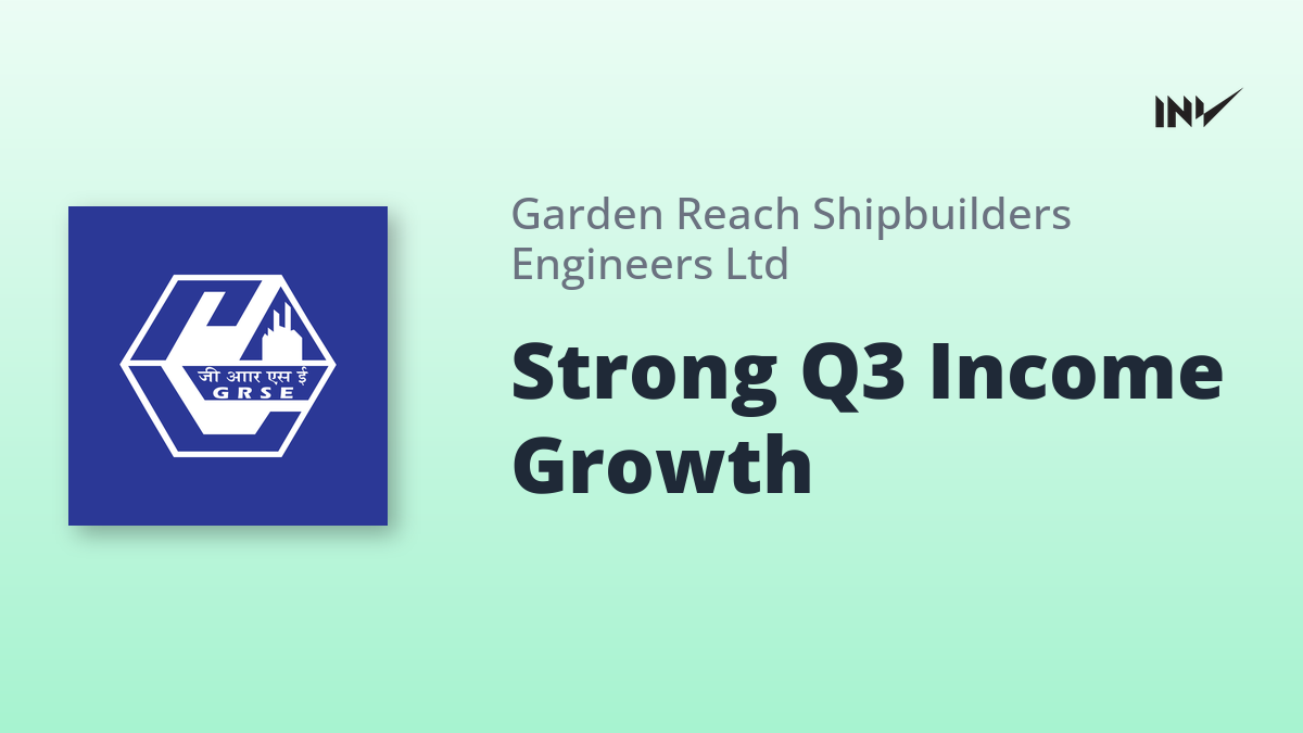 Garden Reach Shipbuilders & Engineers (GRSE) announced strong Q3 FY26 results, highlighted by a 46% increase in total income to ₹1,958 Crore. Revenue from operations grew by 49% to ₹1,896 Crore. The company reported a 74% increase in profit after tax (PAT), reaching ₹171 Crore. GRSE is on track for its best-ever financial performance, boosted by multiple warship deliveries and ongoing projects.