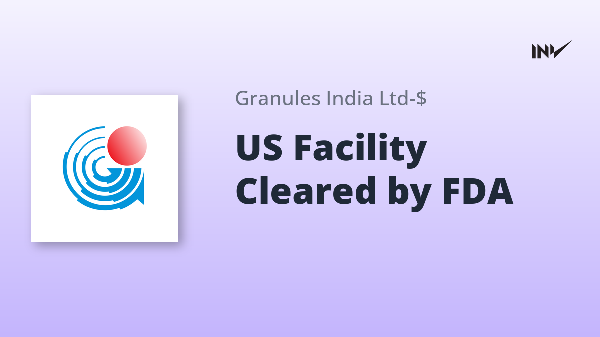 Granules India Limited confirmed that its US-based operations have achieved a significant regulatory milestone. Granules Consumer Health, LLC, a wholly-owned subsidiary, was issued an Establishment Inspection Report (EIR) bearing a No Action Indicated (NAI) Status by the US Food and Drug Administration (FDA).