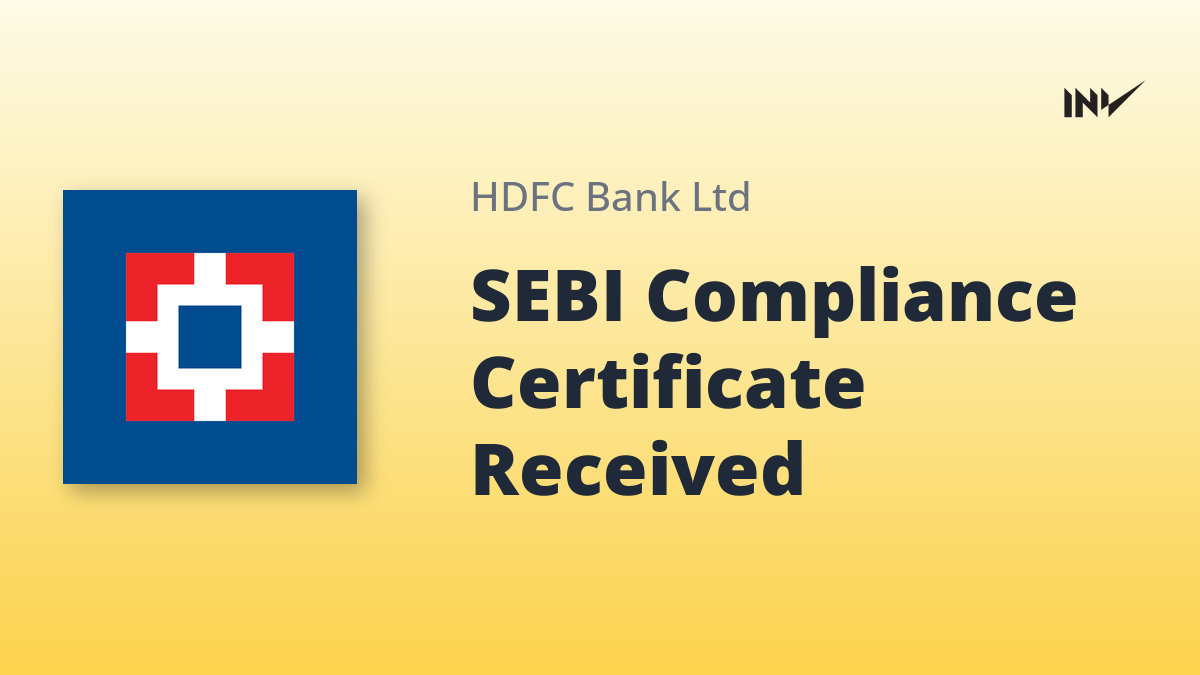 HDFC Bank Certificate for SEBI Regulations Compliance Received