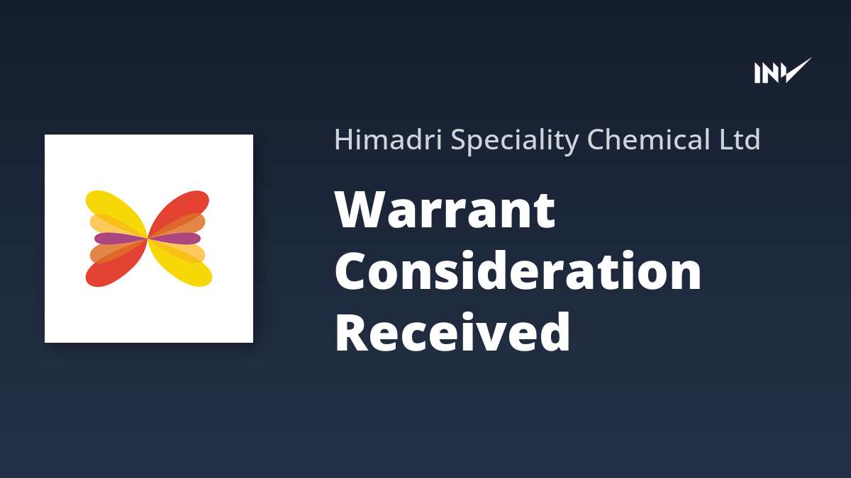 Himadri Speciality Chemical Limited has announced the receipt of consideration connected with the allotment of equity shares on the conversion of warrants. This relates to 1,00,17,200 warrants out of a total of 108,17,000 warrants.