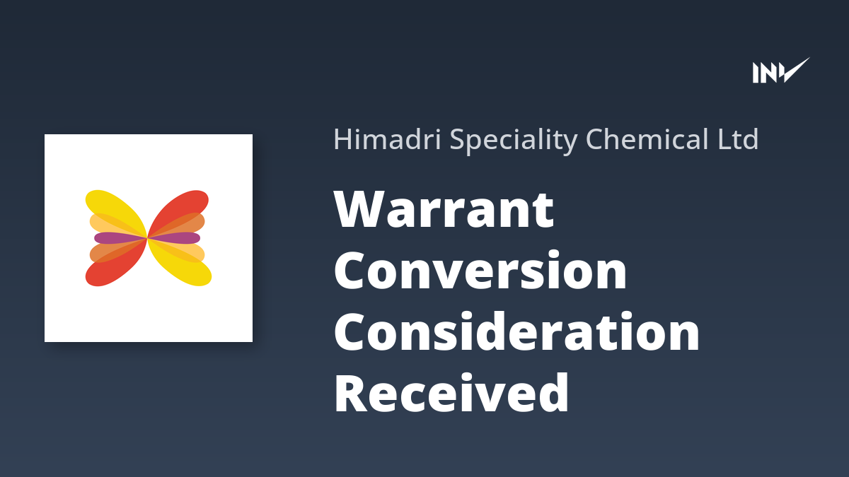 Himadri Speciality Chemical Ltd. has announced the receipt of consideration related to the conversion of warrants into equity shares. This involves 3,07,800 warrants out of a total issue of 10,817,000.