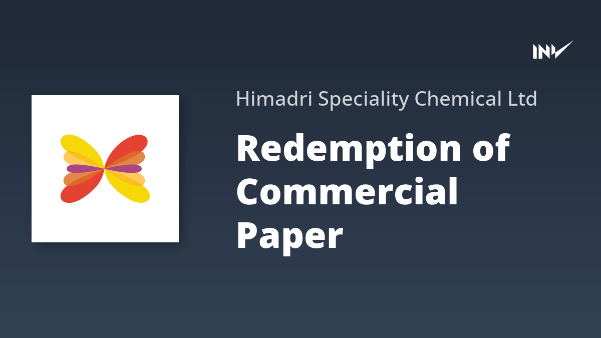 Himadri Speciality Chemical Ltd. has announced the successful redemption of its commercial paper (CP) amounting to ₹100 Crore. This redemption, dated December 3, 2025, confirms the company’s full and timely repayment to the CP holders as per the terms of issuance. The announcement underscores the company’s commitment to its financial obligations and efficient capital management.