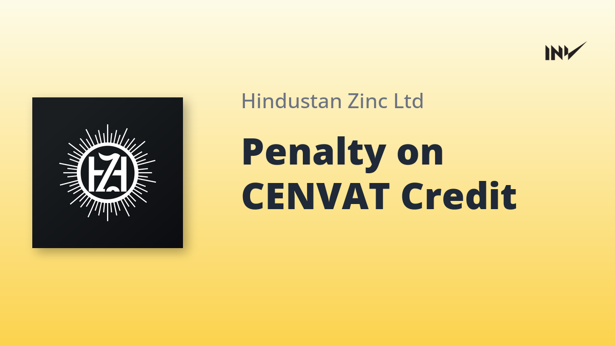 Hindustan Zinc Limited has received an order regarding CENVAT credit. The penalty, issued by the Office of the Commissioner, Central Goods & Service Tax in Udaipur, amounts to ₹73,46,112, along with the applicable tax demand and interest.
