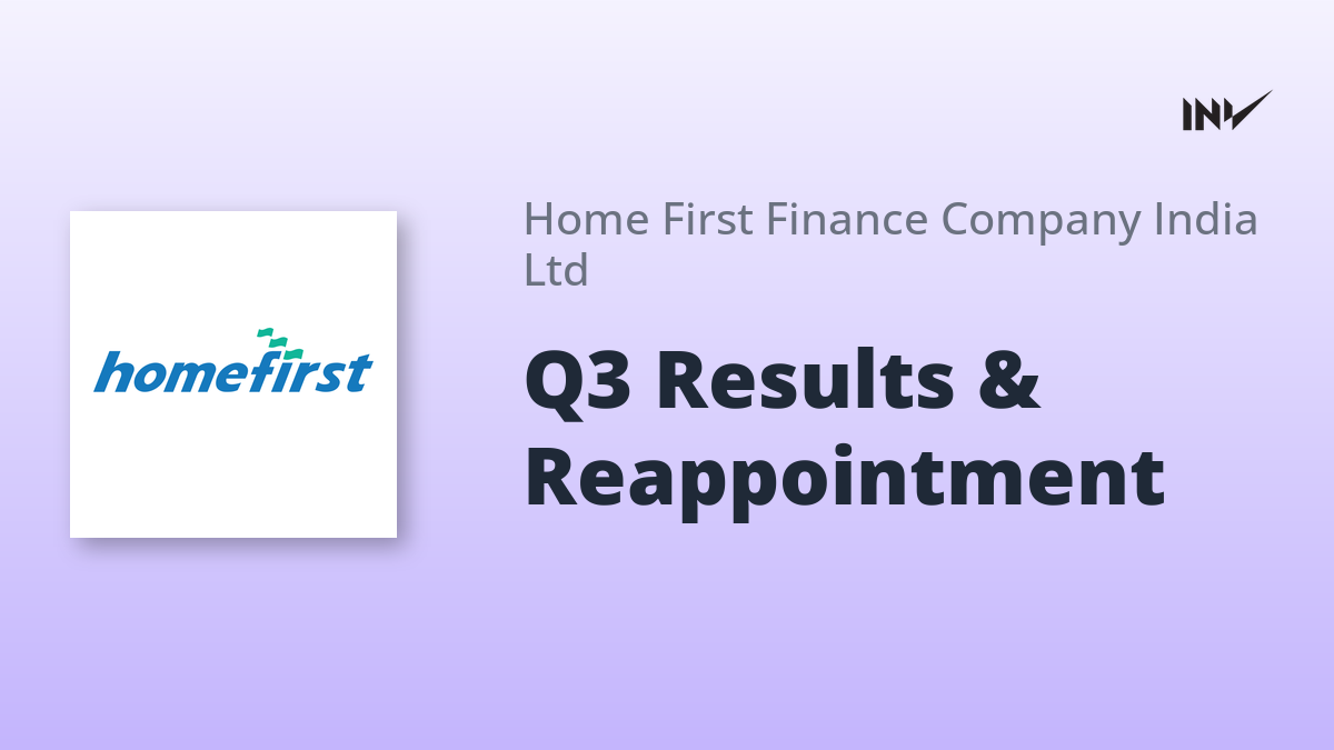 Home First Finance Company India Limited announced its Q3 FY26 financial results, reporting a profit after tax of ₹1,402 million. The Board also approved the reappointment of Ms. Kavita Semwal as Chief Compliance Officer, effective May 1, 2026, for a three-year term. The company continues to focus on affordable housing finance in India.