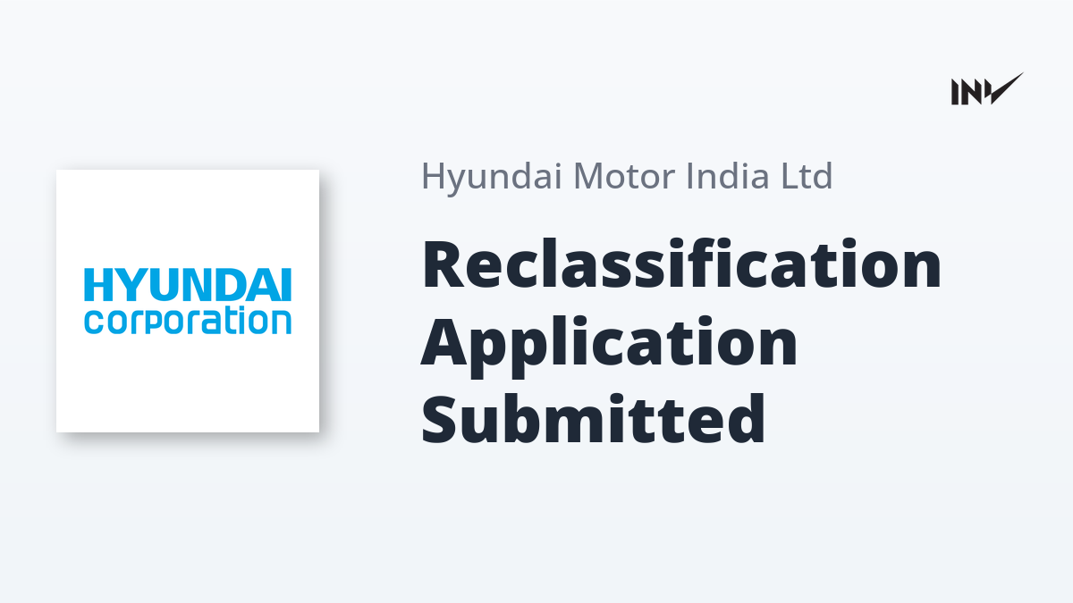 Hyundai Motor India Limited announced that it submitted an application for reclassification on February 06, 2026. The application involves reclassifying Hyundai Motor Investment Inc.