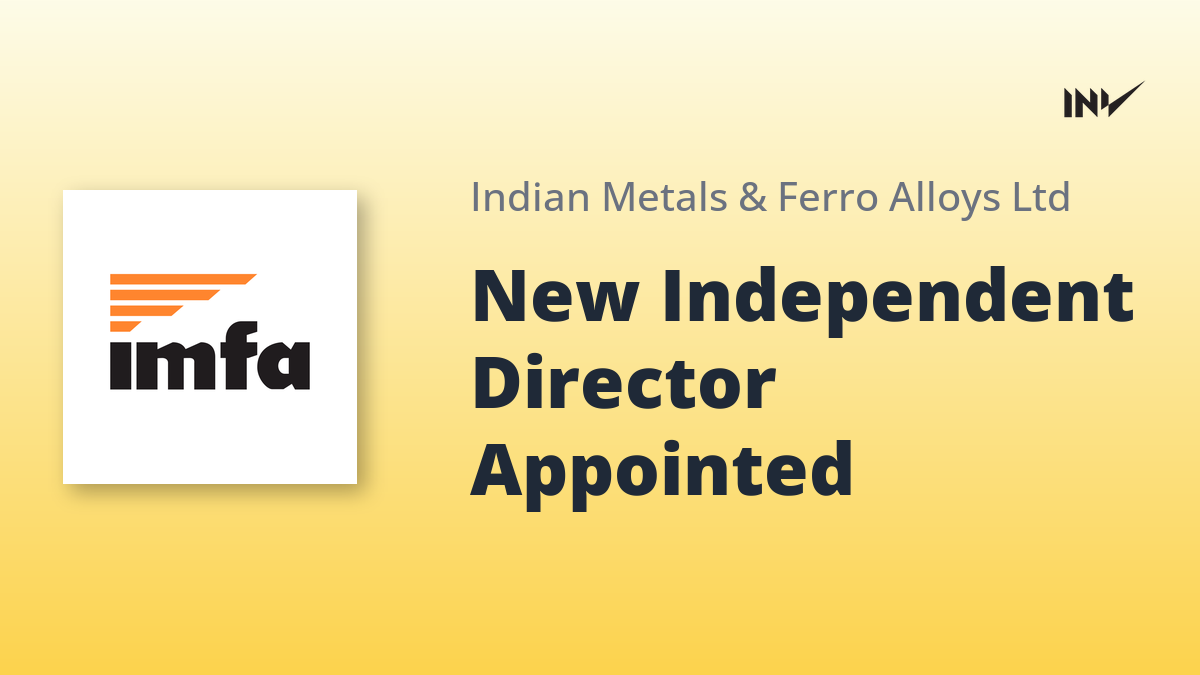 Indian Metals & Ferro Alloys (IMFA) is pleased to announce the appointment of Ms. Kiran Dhingra as an Additional Director (Non-Executive Independent) on the Board. This appointment is effective from February 4, 2026, and will be for a period of 5 years. The appointment remains subject to the approval of the shareholders.