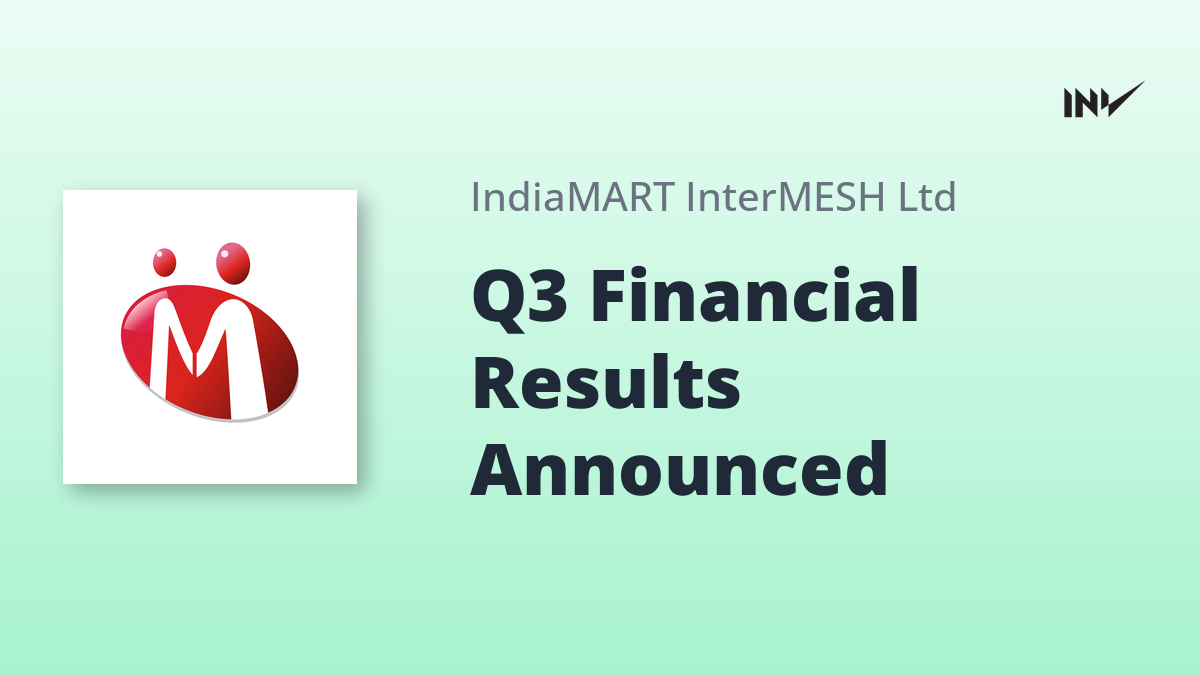 IndiaMART InterMESH Limited announced its audited consolidated financial results for the quarter and nine months ended December 31, 2025. The company reported a total income of INR 5,370 million for Q3 2026. Net profit for the quarter stood at INR 1,883 million. Basic earnings per share was reported at INR 31.37. The results reflect IndiaMART’s continued growth and financial stability in the online B2B marketplace.
