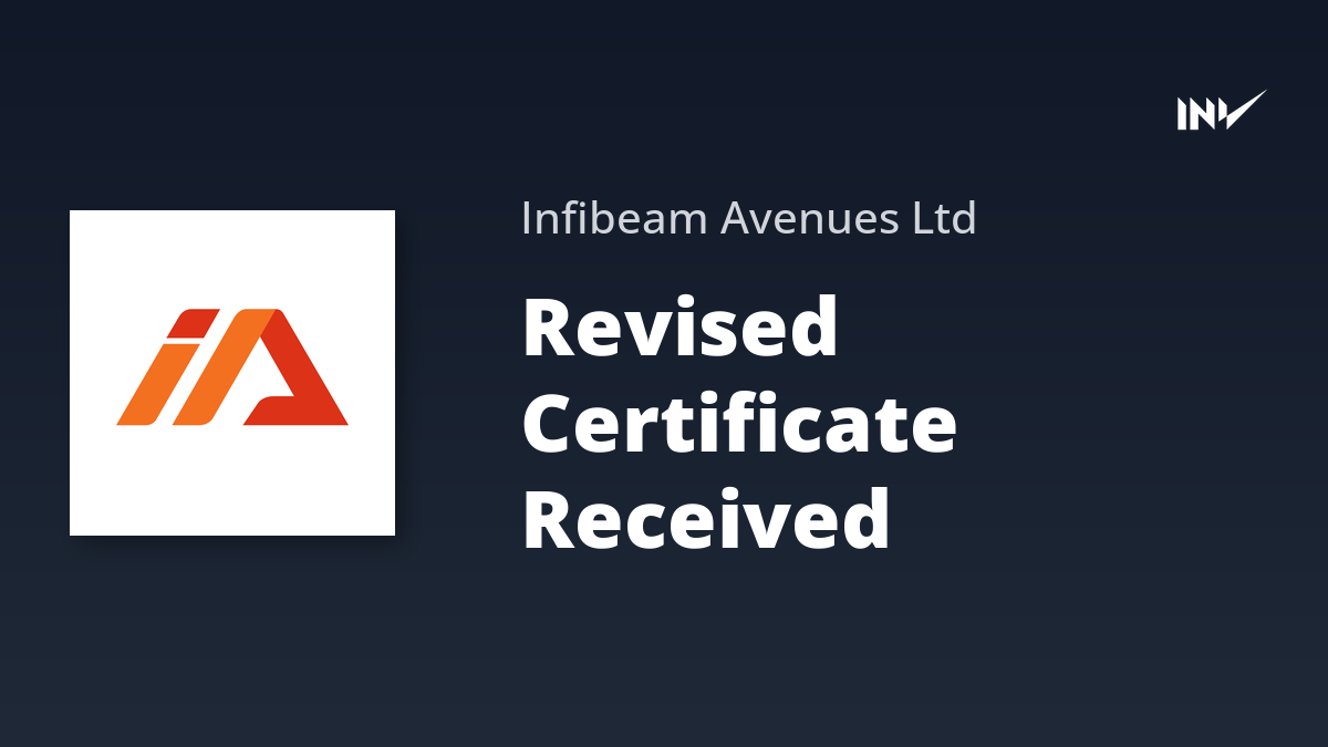 Infibeam Avenues Limited has secured a revised CA Certificate related to its application for a change of name. The company had previously announced this initiative on December 17, 2025.