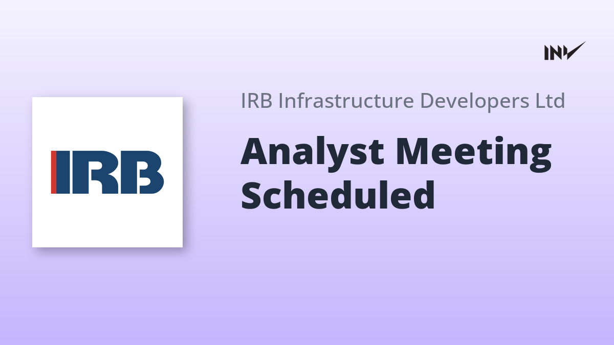 IRB Infrastructure Developers Limited will host meetings with investors and analysts on September 23, 2025. These meetings will be conducted in a virtual or in-person format and hosted by Arihant Capital. The company confirmed that no unpublished price-sensitive information (UPSI) is expected to be shared during these discussions. The schedule is subject to change.