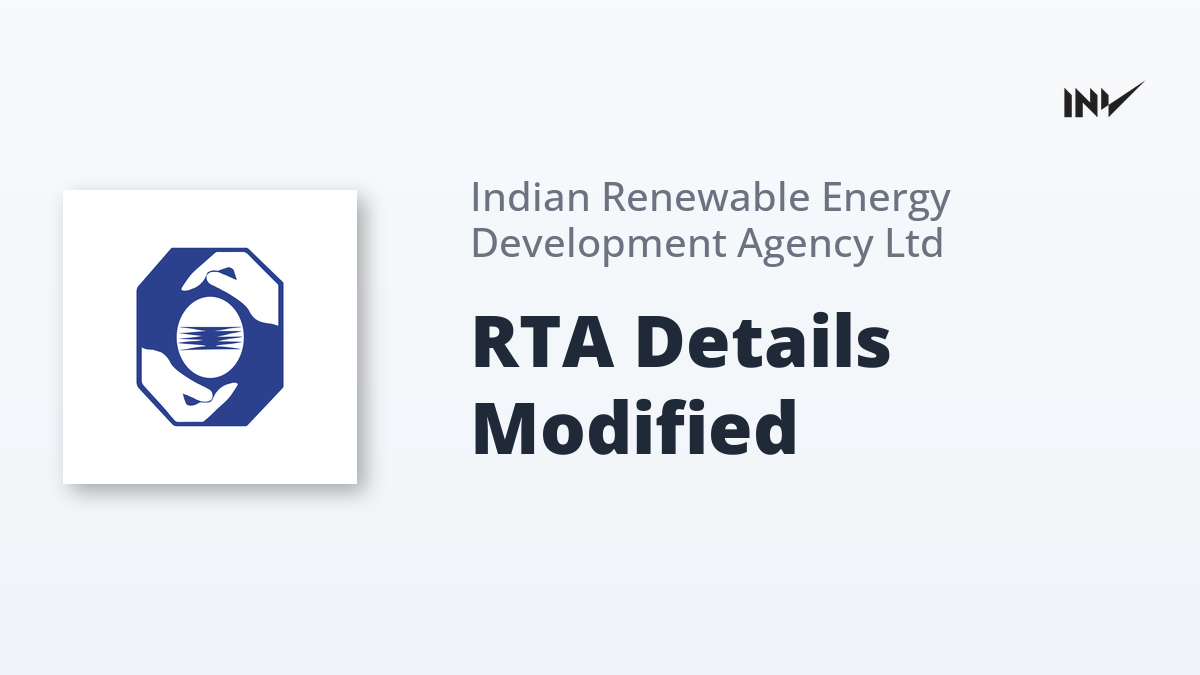 IREDA has changed the name of its Registrar and Share Transfer Agent (RTA) to MUFG Intime India Private Limited. This change follows an earlier communication on January 6, 2025, regarding this update.