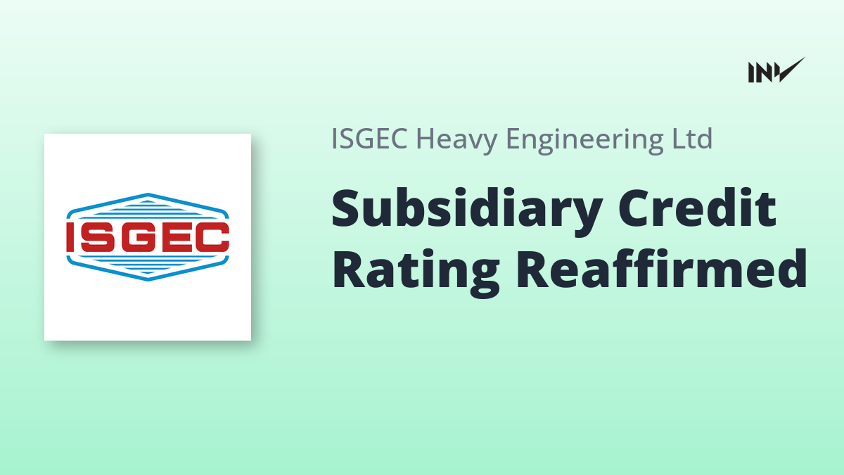 ISGEC Heavy Engineering Limited announced that ICRA Limited has reaffirmed the credit rating for a Rs. 20 Crore line of credit held by its non-material subsidiary and joint venture, Isgec Redecam Enviro Solutions Private Limited. The existing rating of [ICRA]BBB (Stable) was maintained following the review conducted on February 25, 2026. This re-affirmation pertains to the Non-Fund Based Working Capital Facilities, ensuring continuity in the financial standing of the subsidiary.