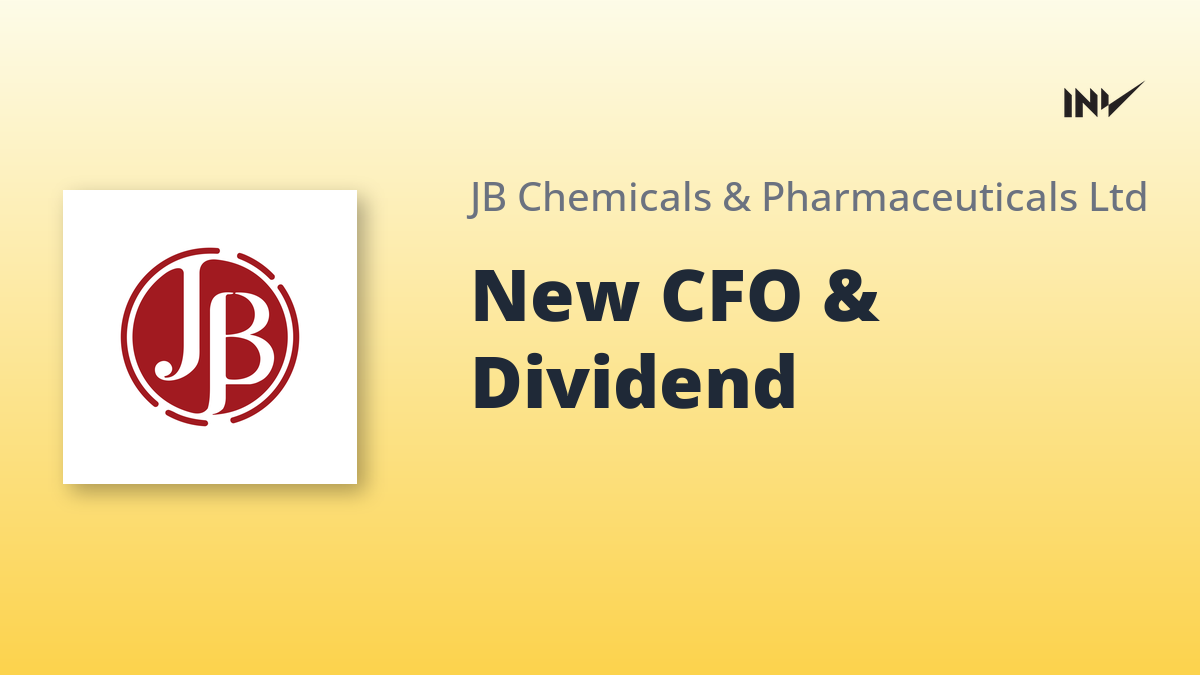 J.B. Chemicals & Pharmaceuticals has appointed Kaushal Solanki as its new Chief Financial Officer, effective February 5, 2026. The board also approved an interim dividend of ₹12.70 per equity share (1270% on face value of ₹1) for the financial year 2025-26. The dividend will be credited to shareholders on or after February 25, 2026.