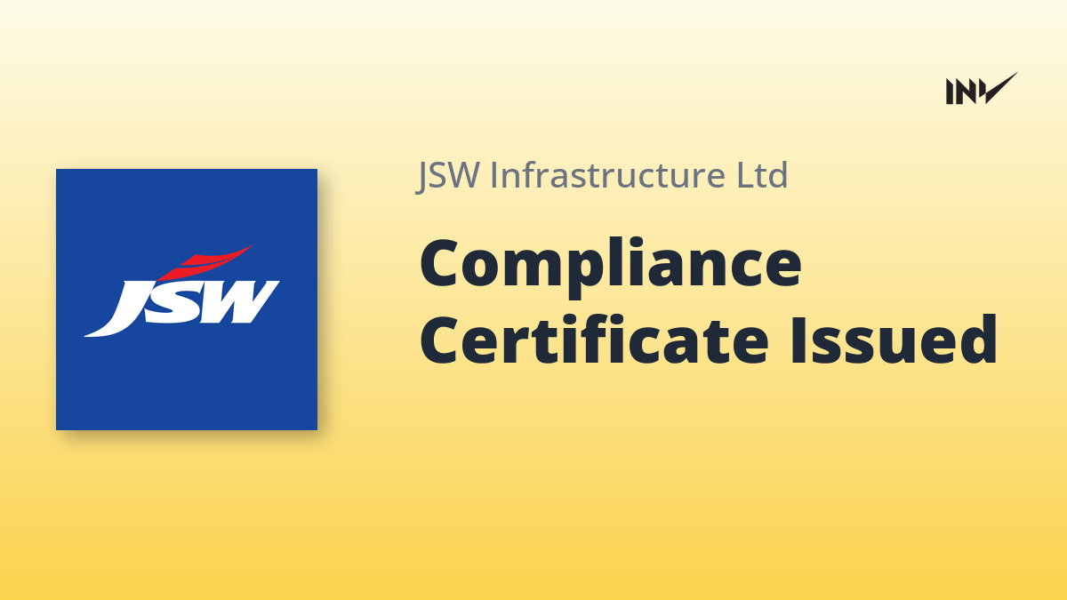 JSW Infrastructure has announced that it has received a compliance certificate under Regulation 74(5) of the SEBI (Depositories and Participants) Regulations, 2018, for the quarter ended September 30, 2025. The certificate confirms that no securities were received for dematerialization during the quarter and that no certificates were mutilated or cancelled. The company has requested the exchange to take the certificate on record.