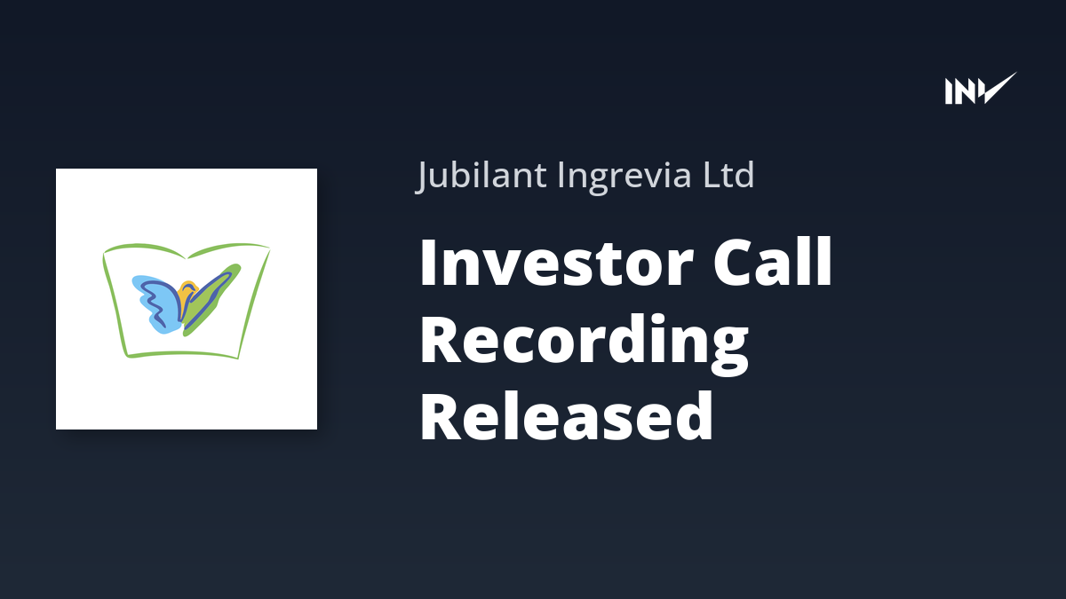Jubilant Ingrevia Audio Recording of Investor Call Available