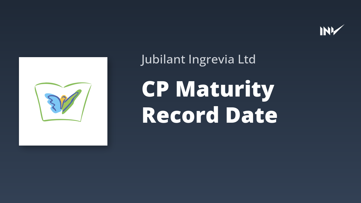 Jubilant Ingrevia has announced the record date for the maturity of its Commercial Paper (CPs) as November 20, 2025. The issue size is ₹50 Crore with an ISIN of INE0BY014425. The date of issue for these CPs was September 22, 2025, and the date of maturity is November 21, 2025. These CPs are listed on the National Stock Exchange of India Limited.