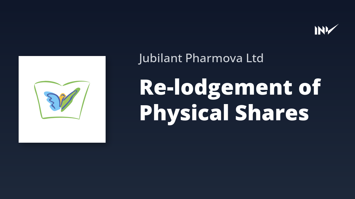 Jubilant Pharmova has announced a special window for the re-lodgement of transfer requests for physical shares. This initiative follows a circular issued on July 2, 2025. The company has received a report from its Registrar and Share Transfer Agent, Alankit Assignments Limited, detailing the status of re-lodgement requests as of November 30, 2025. Information is available on the company website.