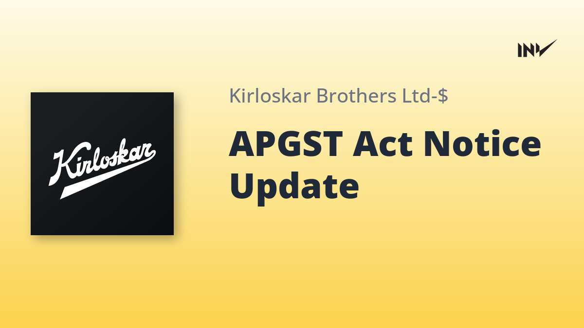 Kirloskar Brothers Limited (KBL) is providing an update concerning a notice received under the Andhra Pradesh GST (APGST) Act, 2017. This relates to alleged tax arrears associated with a transaction undertaken by an unincorporated Joint Venture (JV) named IVRCL-KBL-MEIL (JV) Hyderabad. The JV includes IVRCL Ltd., Kirloskar Brothers, and Megha Engineering & Infrastructure Ltd. (MEIL) and was formed for a project with the Water Resources Department of the Government of Andhra Pradesh.