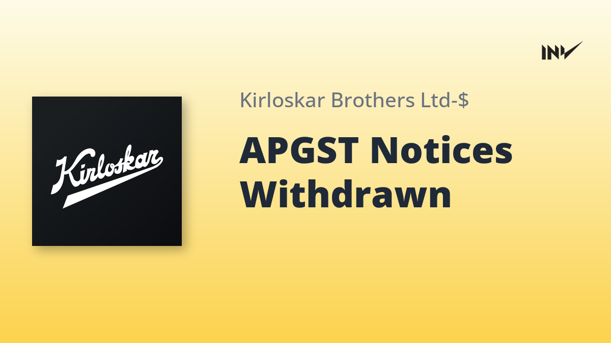 Kirloskar Brothers Limited (KBL) has received confirmation that the demand notices issued to its directors regarding alleged tax arrears under the Andhra Pradesh GST Act, 2017, have been withdrawn. These notices, initially issued on January 21, 2025, claimed tax arrears of ₹15,48,06,528 relating to a transaction undertaken by an unincorporated Joint Venture (IVRCL-KBL-MEIL).