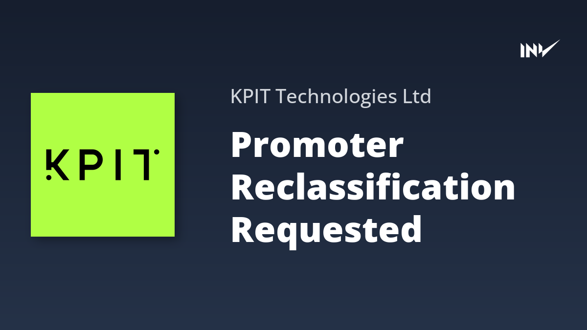 KPIT Technologies has received requests from two promoters, Mr. Ajay Bhagwat and Ms. Ashwini Bhagwat, for reclassification from the ‘Promoter’ category to the ‘Public’ category. Together, they hold 2,24,68,839 shares, representing 0.82% of the company’s total share capital. The reclassification is subject to board and stock exchange approval.