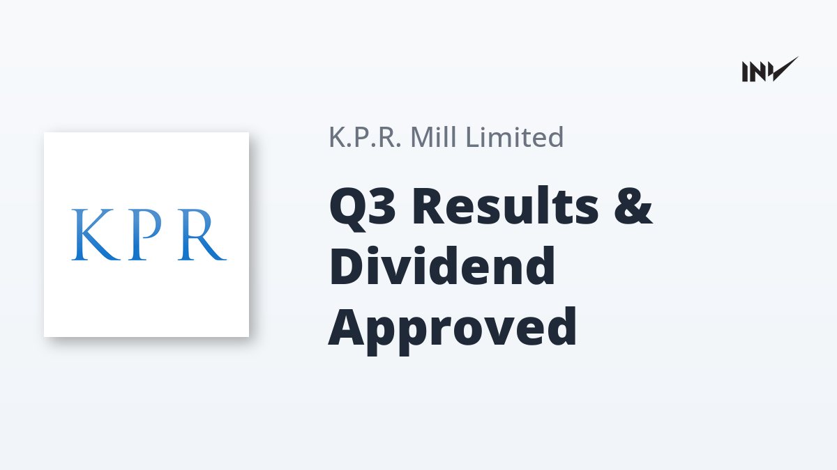 K.P.R. Mill Limited announced the approval of its Un-Audited Standalone and Consolidated Financial Results for the Quarter ended December 31, 2025. The Board declared a substantial 250% Interim Dividend (₹2.50 per equity share of Re.1/- each) for FY 2025-26. The Record Date for determining entitlement for this dividend has been fixed as February 13, 2026.