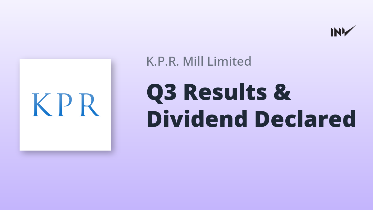 K.P.R. Mill Limited announced the approval of its Un-Audited Standalone and Consolidated Financial Results for the quarter ended December 31, 2025. The Board of Directors also declared a substantial 250% Interim Dividend for FY 2025-26, equivalent to ₹2.50 per equity share. The Record Date for determining eligible shareholders for this dividend has been set for February 13, 2026.