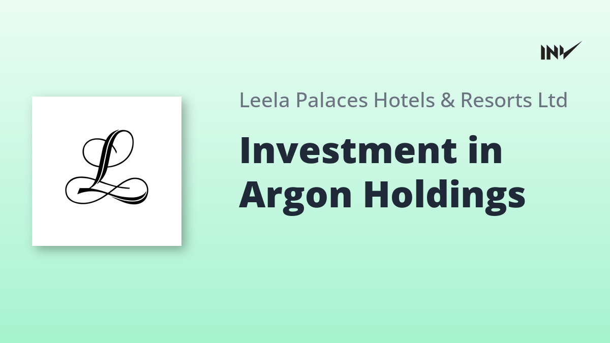Leela Palaces Hotels & Resorts Subsidiary Makes Further Investment in Argon Holdings