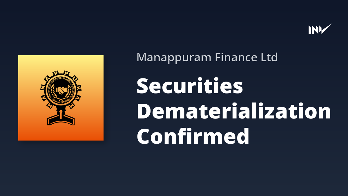 Manappuram Finance announced on January 2, 2026, the confirmation of securities dematerialization for the quarter ended December 31, 2025 (Q3 2026). The company has completed the necessary procedures related to the dematerialization of securities.