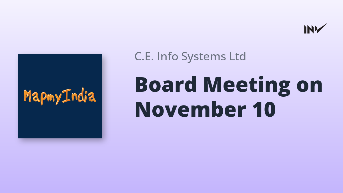 A meeting of the Board of Directors of MapmyIndia is scheduled for November 10, 2025. The board will discuss and approve the Standalone and Consolidated Un-Audited Financial Results, along with the Limited Review Report for the quarter and half year ended September 30, 2025. The trading window for dealing in the company’s shares has been closed since October 1, 2025.