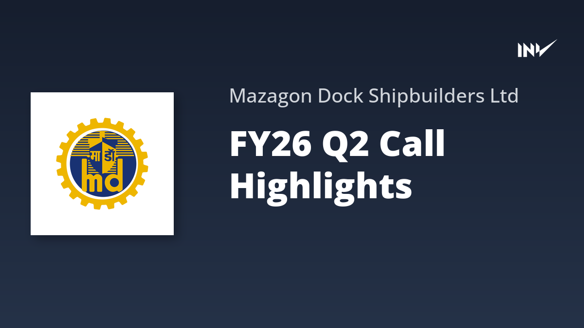 Mazagon Dock Shipbuilders Limited held its Q2 FY26 earnings conference call on November 3, 2025. Executives discussed financial results, operational highlights, and future outlook. Key topics included the P75 submarine project, potential Landing Platform Dock (LPD) opportunities, margin expectations, and expansion plans. The company aims to diversify its order book and enhance shareholder value through strategic partnerships and efficient project execution.