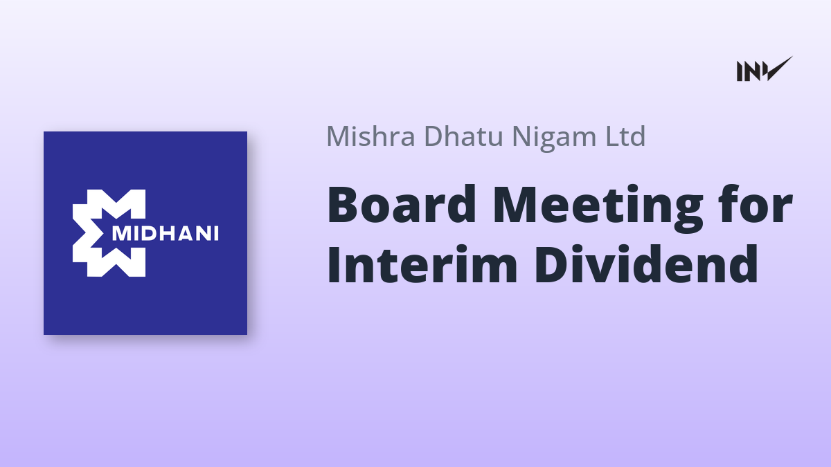 Mishra Dhatu Nigam Limited (MIDHANI) has announced a Board Meeting scheduled for Friday, March 13, 2026. The primary agenda item is to consider and approve the declaration of an Interim Dividend for the Financial Year 2025-26. Concurrently, the company will enforce a trading window closure for Designated Persons from March 6, 2026, through March 15, 2026, in compliance with insider trading codes.