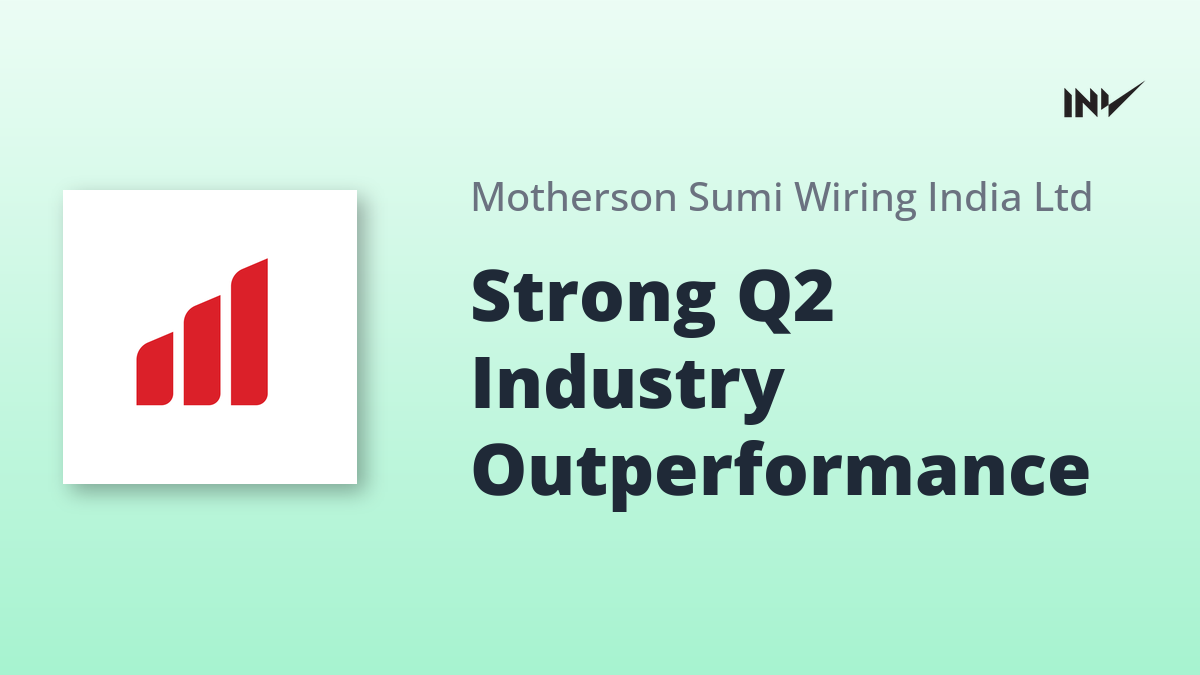 Motherson Sumi Wiring India Limited (MSWIL) reported strong Q2 FY26 results, surpassing industry growth with a 19% increase. Revenue reached ₹2,762 Crores, a 19% YoY growth. EBITDA stood at ₹280 Crores, up by 12% YoY. The company continues to maintain a debt-free status and has seen its EV revenue share grow to 6.7% during the quarter. One Greenfield project commenced production as planned.