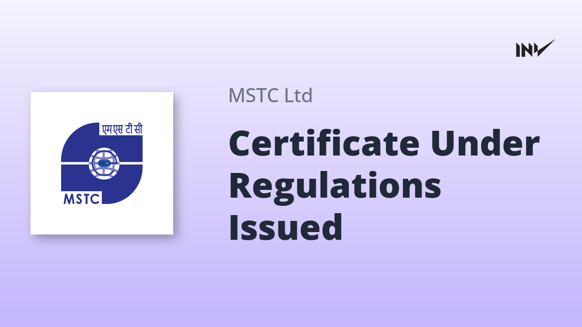 MSTC Limited has received a certificate under the SEBI (Depositories and Participants) Regulations, 2018. The certificate, received from Bigshare Services Pvt. Ltd., is for the period from October 1, 2025, to December 31, 2025. This confirms compliance with regulatory requirements for depositories and participants.