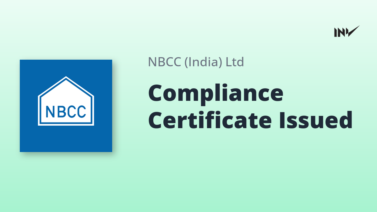 NBCC has issued a compliance certificate under Regulation 74(5) of the SEBI (Depositories and Participants) Regulations, 2018, for the quarter ended September 30, 2025. The certificate confirms compliance regarding dematerialization of securities.