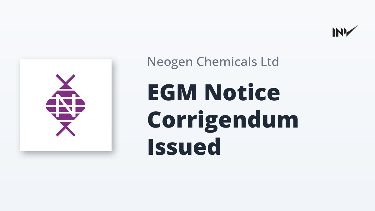 Neogen Chemicals Ltd. issued a Corrigendum to its March 7, 2026, Notice for the Extra Ordinary General Meeting (EGM) scheduled for March 29, 2026. The changes clarify details concerning the proposed preferential issue of equity shares, specifically related to the utilization of proceeds for its subsidiary, Neogen Ionics Limited (NIL), and adjustments to the explanatory statement regarding promoter group transfers.